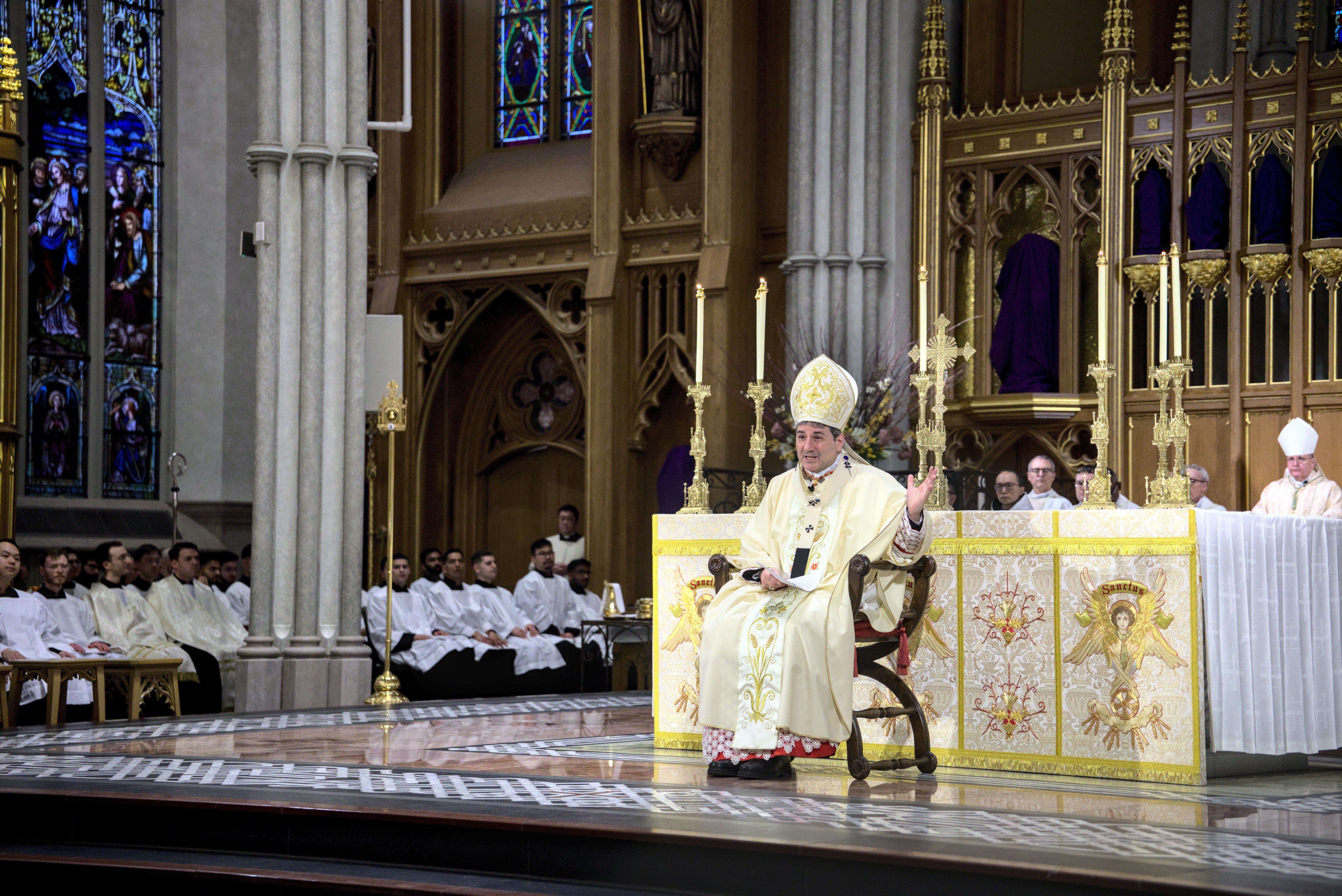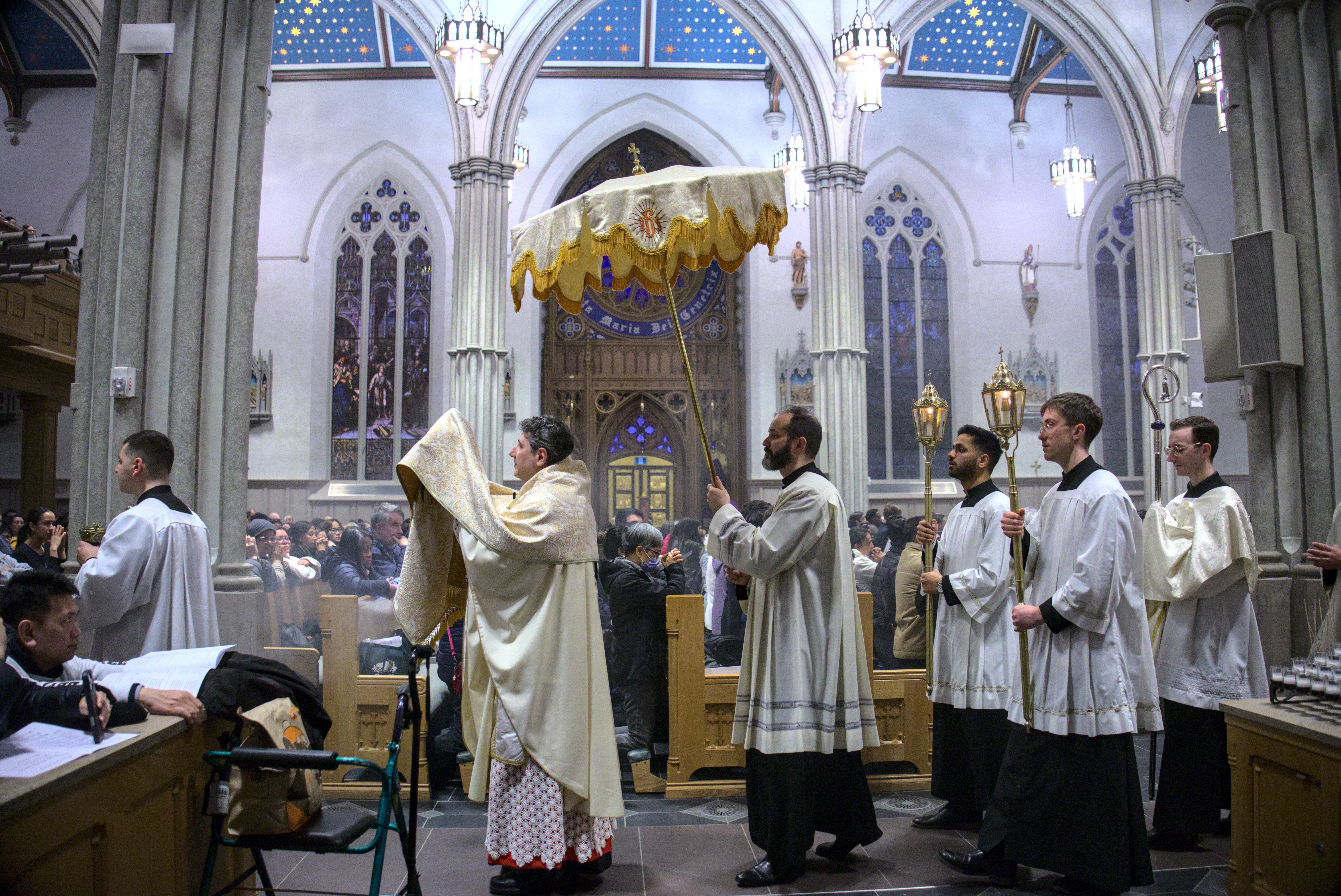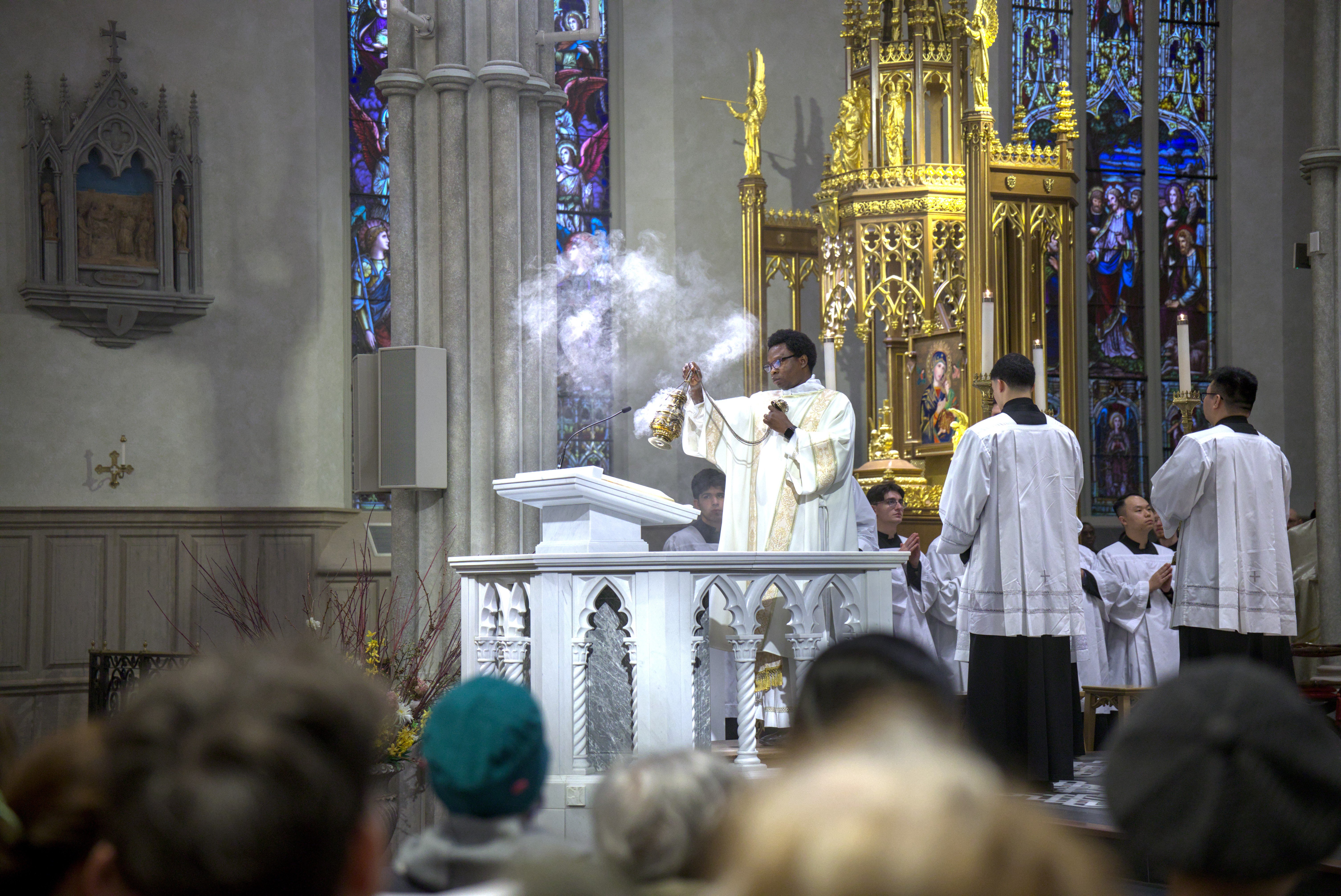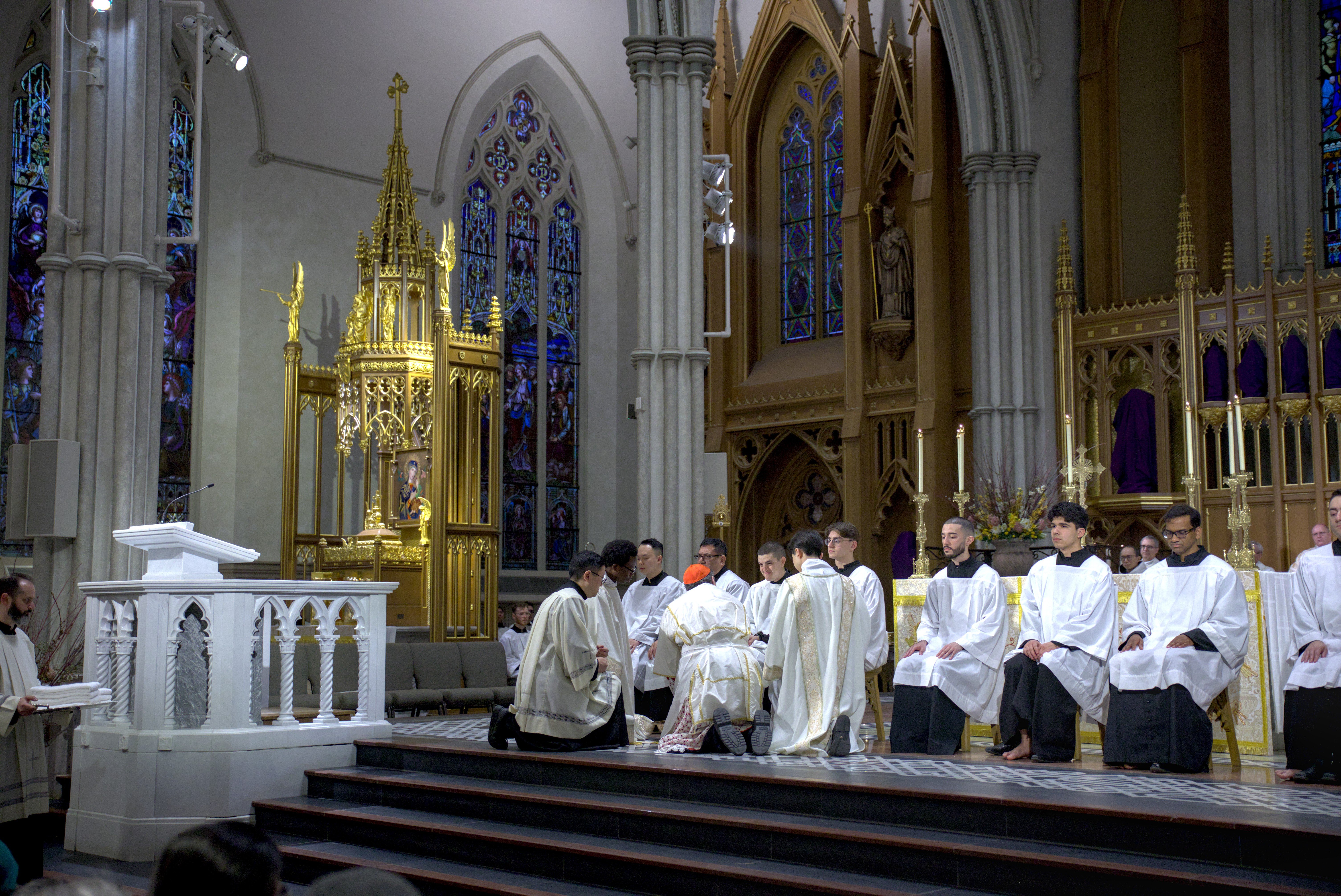 At St. Michael’s Cathedral Basilica, His Eminence Frank Cardinal Leo presided at the 5:30 p.m. Mass. As part of the Holy Thursday Mass, Cardinal Leo washed the feet of 12 seminarians currently in formation for the priesthood. This is done as a sign of humility, unity and love, following the example of Jesus who washed the feet of his disciples.